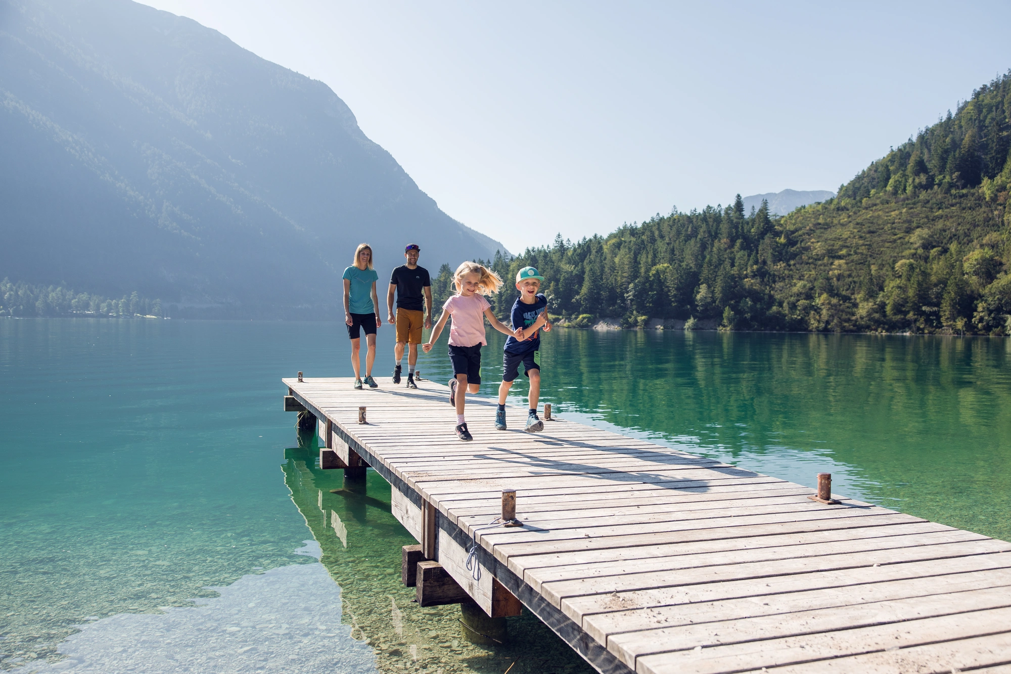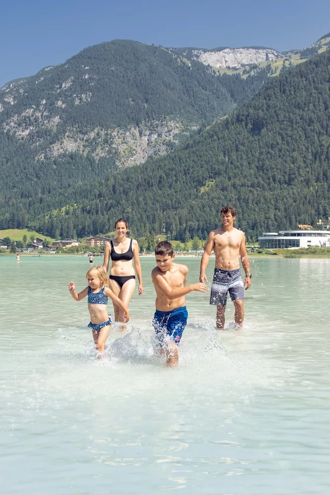 Der Achensee steht für echte Abkühlung und wunderschöne Sommertage. Familien finden flache Uferstellen, sportliche Gäste genießen eine Runde beim Stand-up-paddeln, Segeln oder Surfen, das sind perfekte Achensee-Outdoor-Aktivitäten. Und wer einfach nur mal die Füße in das klare Wasser hängen lässt, erlebt, warum das Baden im Achensee so einzigartig ist.